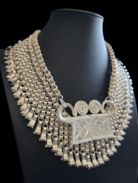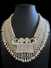This beautiful traditional ncais choker is made with the versatile concept that it can be worn long, a more traditional style, or as a choker for a more modern vibe. Whichever vibe you choose you can't go wrong with this extraordinary piece.